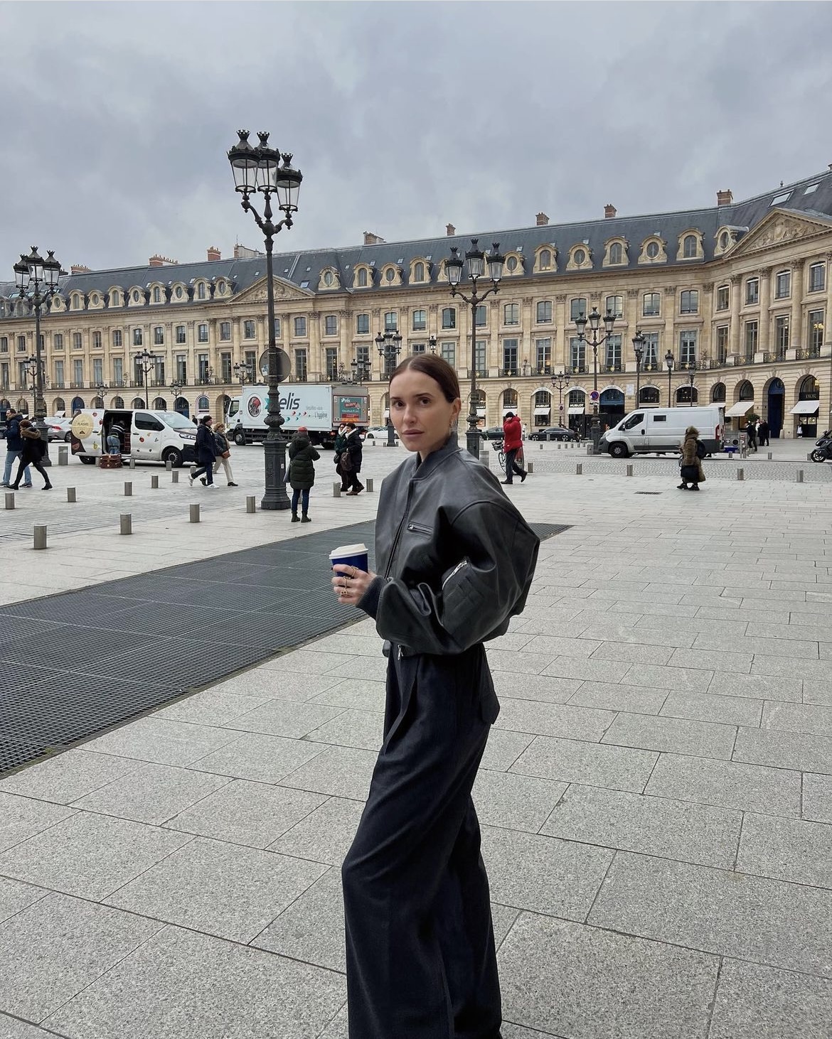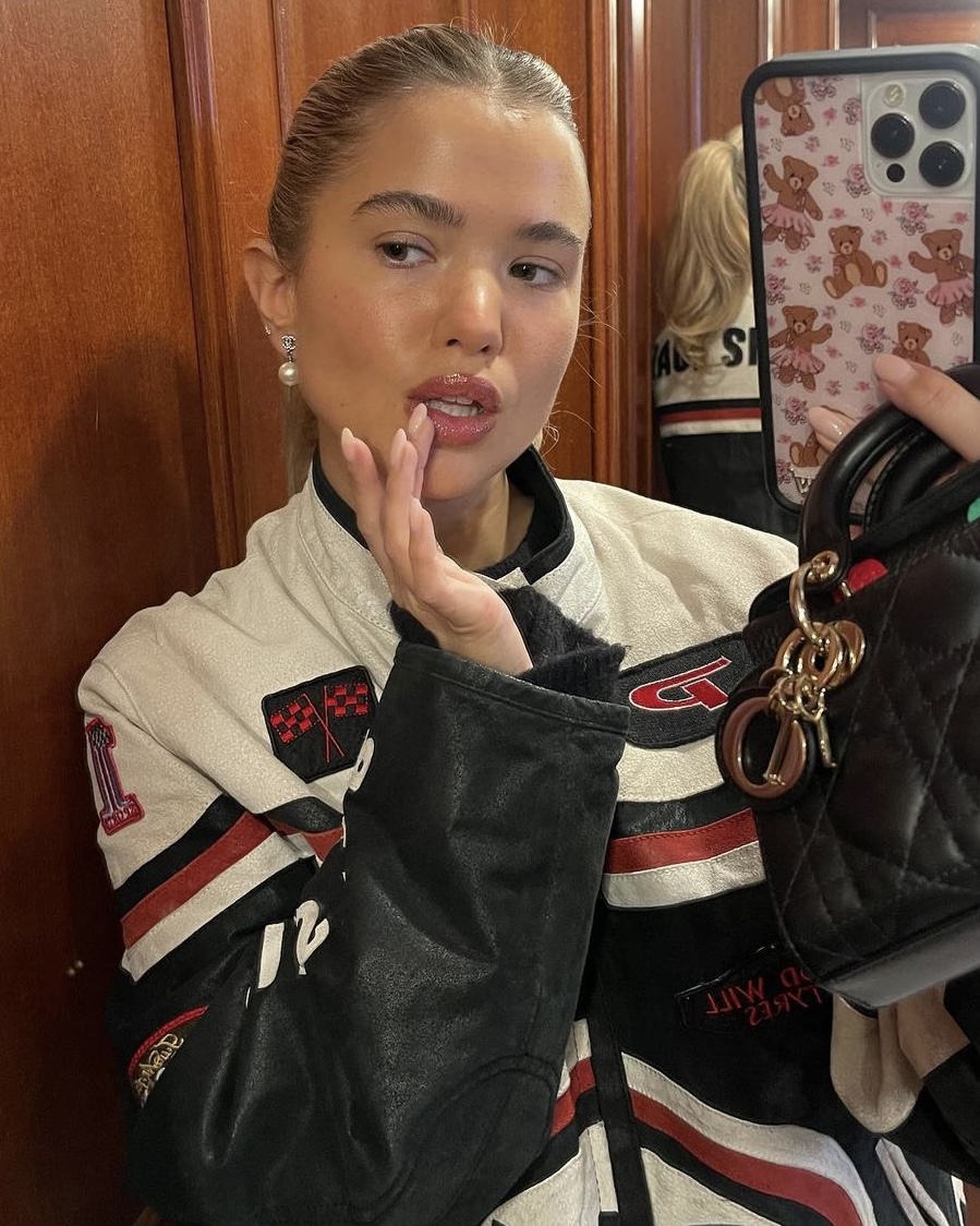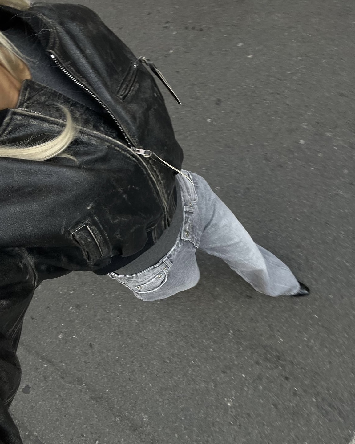 Precis som Matilda väljer stilikonen Lovisa Worge (@lovisaworge) att styla skinnjackan med ballerinaskor och top handle-väska. Dock satsar hon på mer monokrom look i gråskala med raka jeans i en ljusgrå tvätt och en mörkgrå, tajt tröja. Likaså otroligt snygg! Utöver det bär hon ett par solglasögon som blir pricken över i:et i denna trendsäkra outfit.